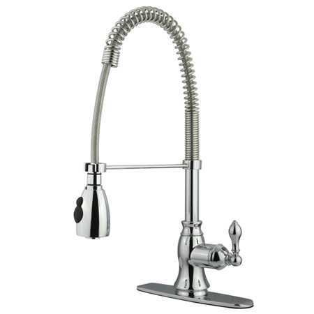 Kingston Brass GS8891ACL American Classic Low Lead Compliant Single Handle Pull-Down Kitchen Faucet with Deck Plate, Polished Chrome